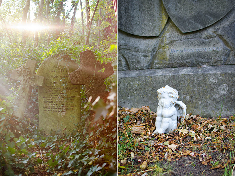 On Saturday I woke up really tired and in a grump. By late afternoon there was gorgeous light streaming over NW5, so Daf persuaded me to shake off the blues and head out for a walk. The plan was to head to a cafe in Highgate for some almond tea, but we ended up falling off Swain's Lane, into the east side of Highgate Cemetery. The light was stunning and the atmosphere in the famous Victorian burial site was amazing. It felt sacred and special to wander amongst all of the Annies, Ethels and Ernests.